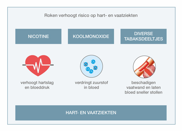 Wanneer u stopt met roken, daalt uw risico op hart- en vaatziekten heel sterk. Soms zijn daardoor medicijnen voor het verlagen van uw bloeddruk of cholesterol zelfs niet meer nodig.